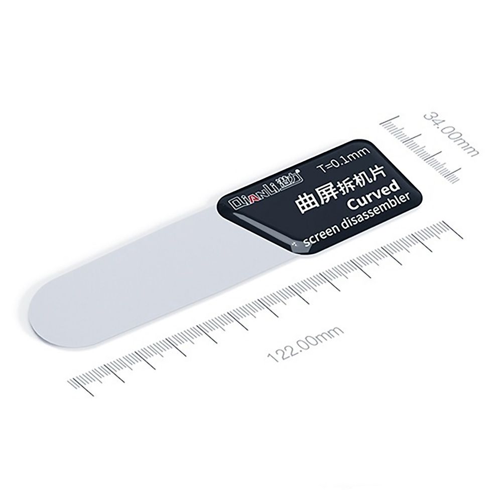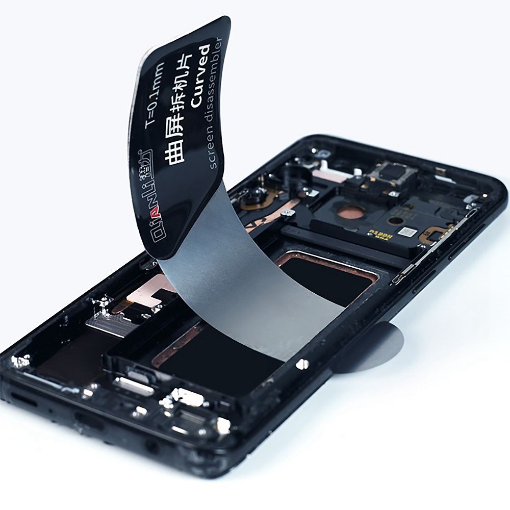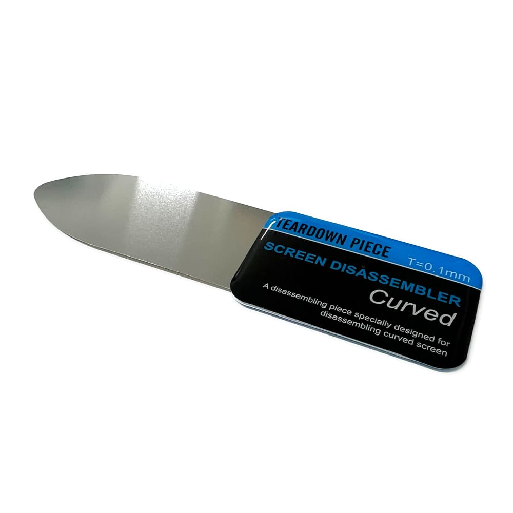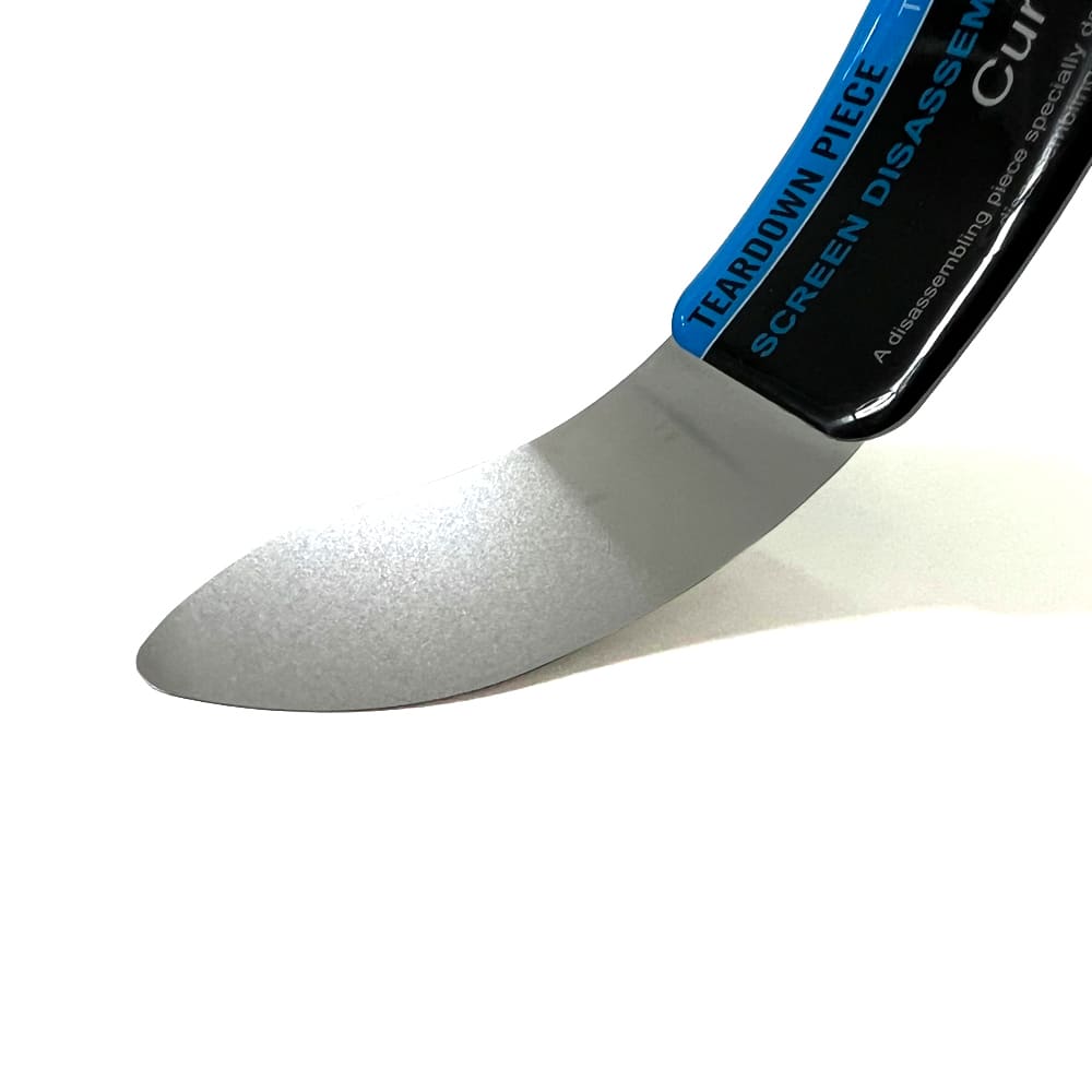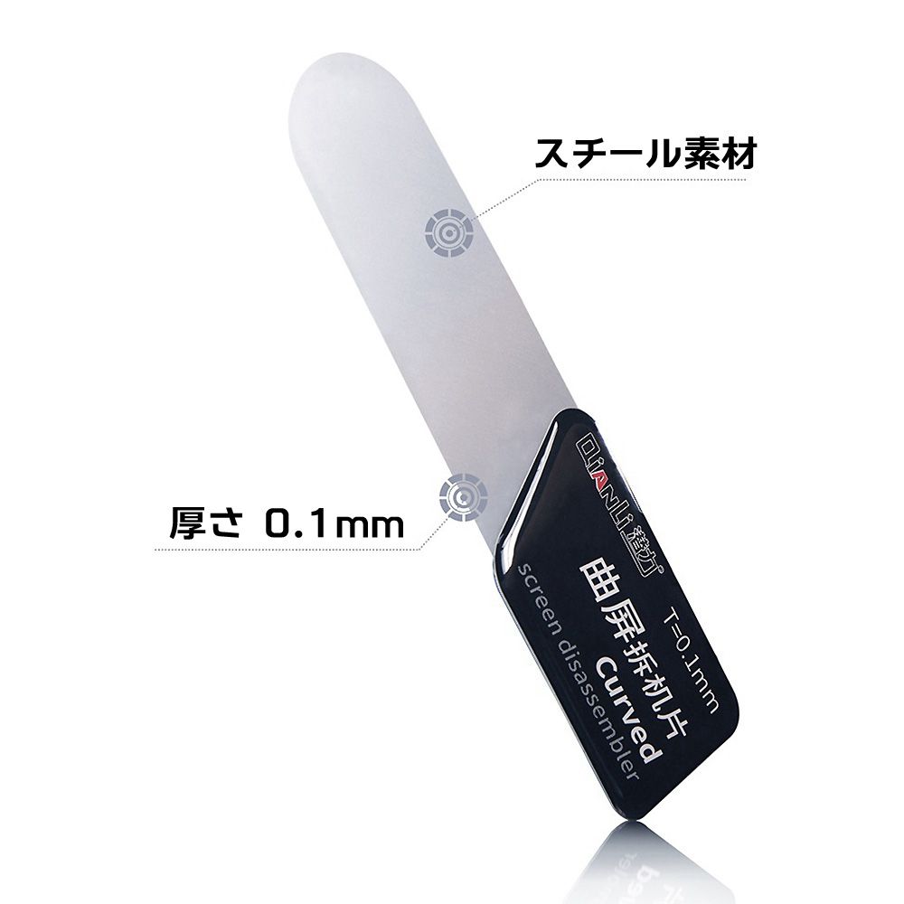 ・厚さ0.1ミリと極薄でしなやかに曲がり、端末に無理な力がかかりにくく、曲面ガラスのスマホや薄いガラスのタブレットでも本体形状に沿って入り込み、部品を破損しにくいツールです。