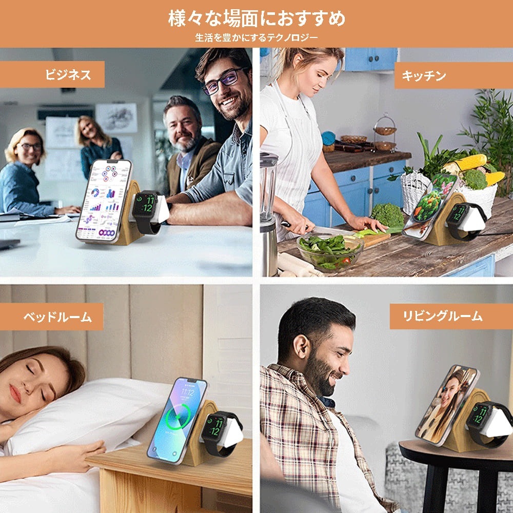 ・商品は充電スタンド部分のみ。画像のiPhone,Airpods,Apple Watch、その他の機器は付属しません。